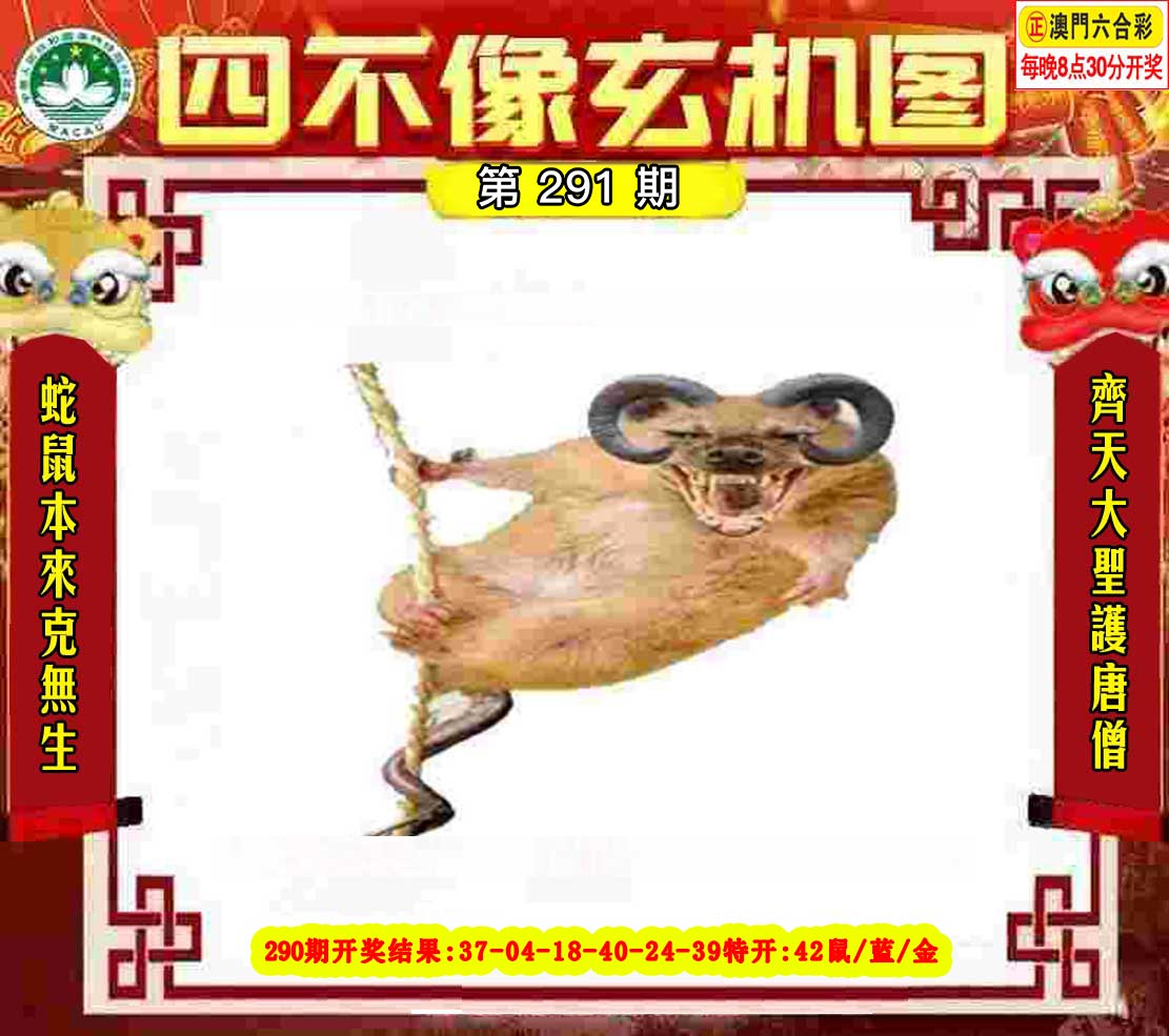 291期:本期四不像图:狗头,羊角,猴身,蛇尾,解狗羊猴蛇 |